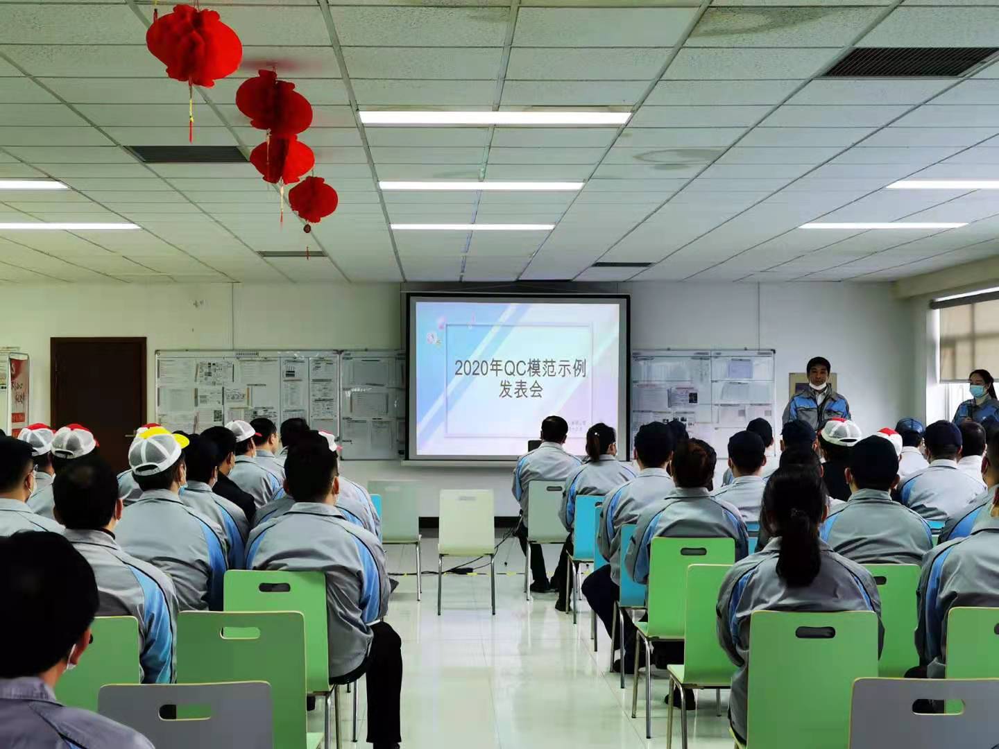 2021年1月12日,上午8:15在公司的配餐廳內展開了一次2020年QC模范小組發表會的活動,此次活動共有4個模范QC小組,他們分別的發表了各自的成果。這4個模范小組分別是:黑馬小組、犀利小組、勇往直前小組、鍍一無二小組。